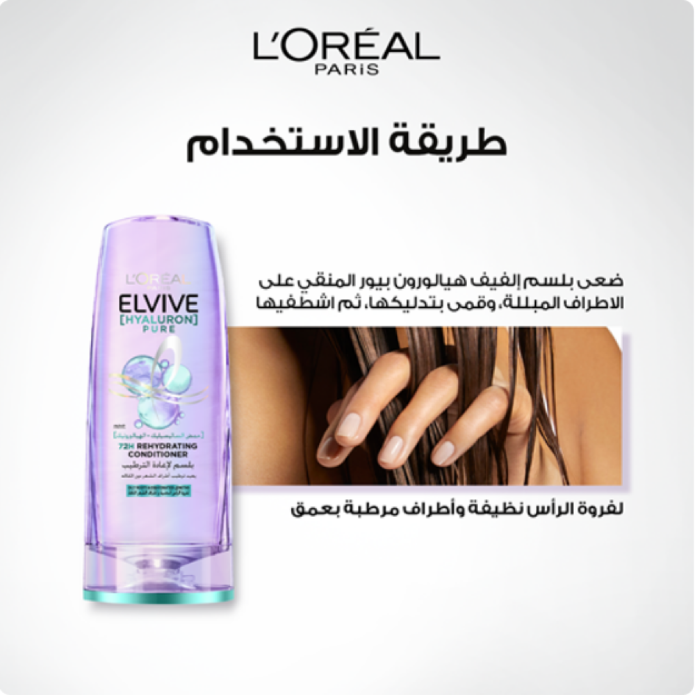 - مع بلسم لوريال الفيف هيالورون بيور الجديد، تمتعي بشعر ناعم و مرطب وسهل التصفيف دون أن تشعري بأي ثقل أو دهون زائدة.